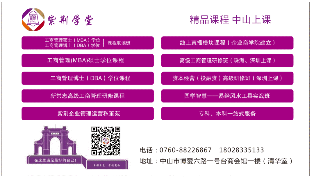 我们是力合紫荆中山教学中心——拥有16年教学历史,珠三角学员三万余名,中山企业家学员近千名,欢迎来中山教学中心参观!我们有EMBA研修班、工商管理MBA硕士学位班、DBA博士学位班,是英国排名前50的公立大学,通过修学分获得的学位与“英国本土证书”一样,学校在中国教育部监管网可查询。中山企业家很多学员已拿到了学位,目前这些学员通过学习有的工资上升至年薪几十万,成为上市公司董秘,企业董事长的,有的融到资金。紫荆是一个融情、融智、融智的平台,让我们携手前行,共同成长。