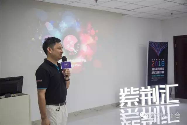 首先,紫荆同学会主席刘斌上台致辞,对各位参赛者和评委表达敬意。他感慨道,去年商模比赛的场景还历历在目,转眼又到一年大赛现场;可幸的是,创业的艰难并没有停止人们创新的心。他祝福所有选手都能在本次大赛中取得佳绩,在紫荆汇的平台上收获自己。