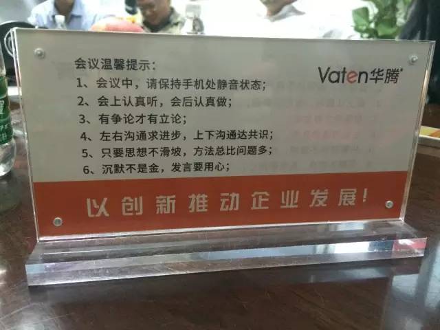 说到转型的历程,胡会长觉得过程是艰辛的,其中企业管理文化更是其中重要一环。胡会长在读完清华高级工商管理研修班课程后,随后又继续攻读了学位班课程。他认为MBA课程让他找到了创新的企业管理理念,并将其转变为企业文化,带动企业团队一同进步。不难发现,走进胡会长企业,我们会看到许多小细节,例如会议室内会议牌写着这样的温馨提示: