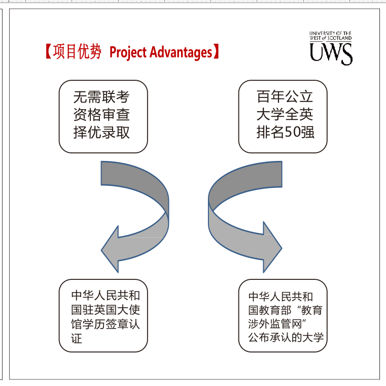▲英国苏格兰西部大学是中国教育部认证、推荐予中国学生留学英国的大学之一。获得英国苏格兰西部大学的硕士学位以后,可以获得英国外交部或中国驻英大使馆的认证。