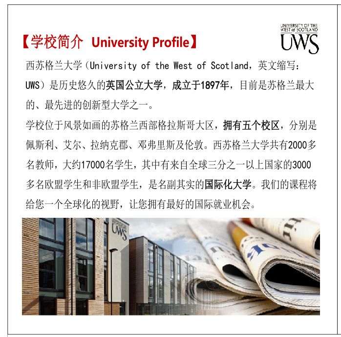 招生简章 | 英国西苏格兰大学MBA硕士学位班