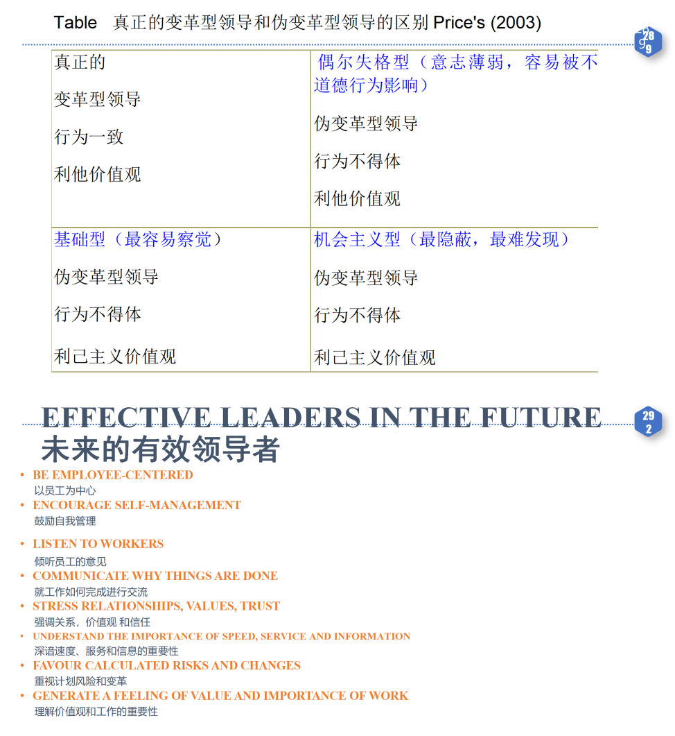 第六章 领导与伦理(道德性领导和非道德性领导 、变革型领导和伪变革型领导。)
