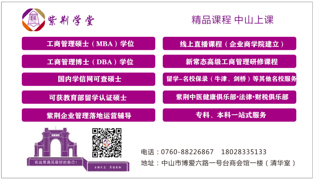 我们是力合紫荆中山教学中心——拥有16年教学历史,珠三角学员三万余名,中山企业家学员近千名,欢迎来中山教学中心参观!我们有EMBA研修班、工商管理MBA硕士学位班、DBA博士学位班,是英国排名前50的公立大学,通过修学分获得的学位与“英国本土证书”一样,学校在中国教育部监管网可查询。中山企业家很多学员已拿到了学位,目前这些学员通过学习有的工资上升至年薪几十万,成为上市公司董秘,企业董事长的,有的融到资金。紫荆是一个融情、融智、融智的平台,让我们携手前行,共同成长。