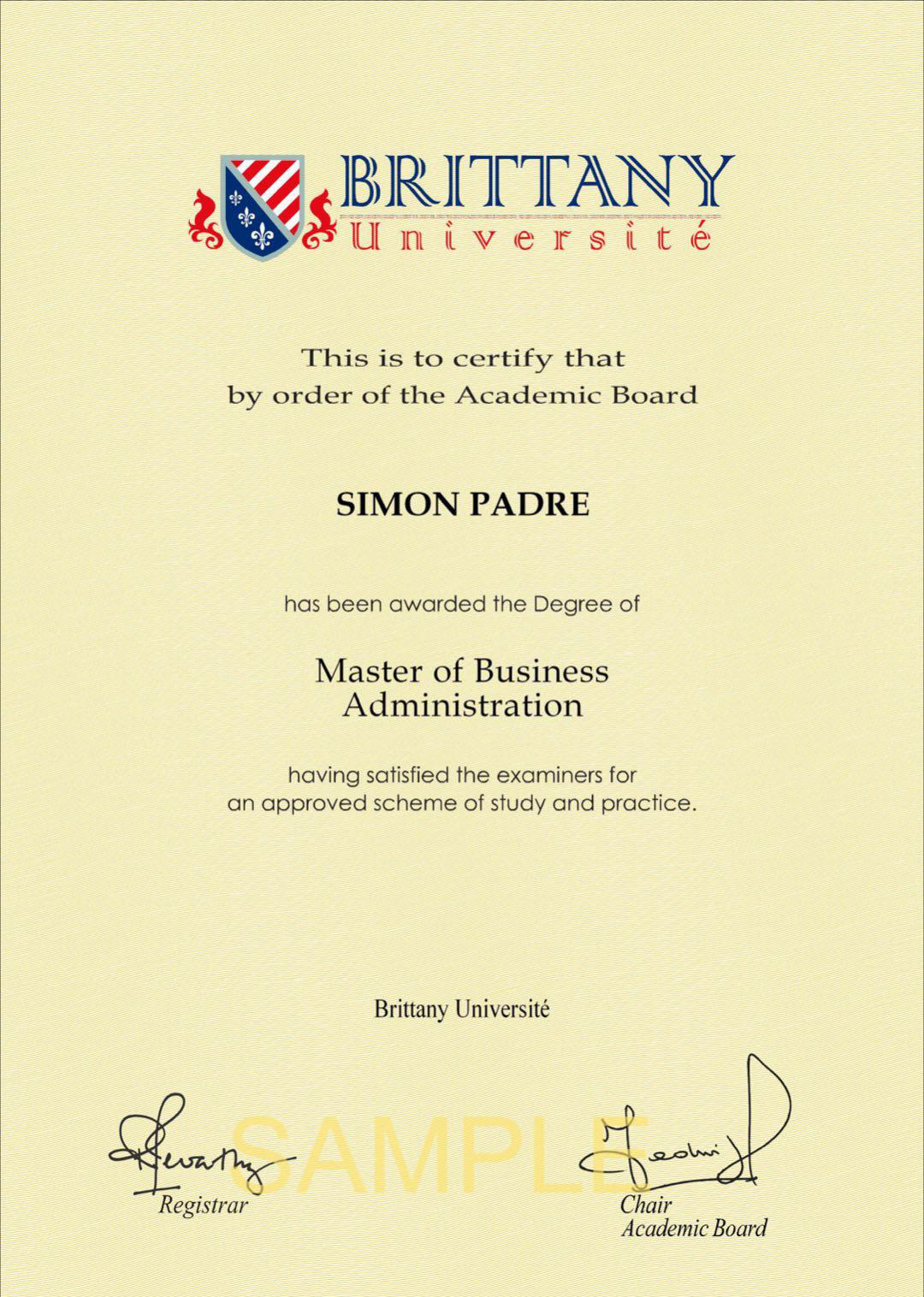 法国布列塔尼大学颁发国际承认的“工商管理MBA硕士学位证书”