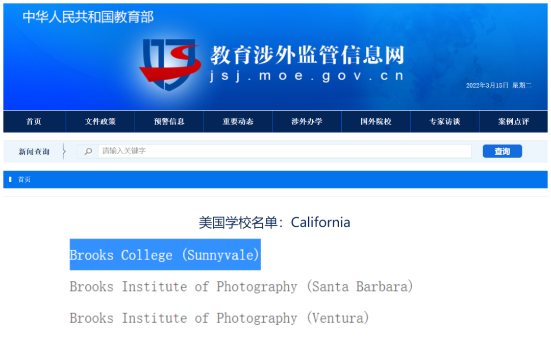 中国教育部涉外监管信息网查询网址:http://jsj.moe.gov.cn/news/1/170.shtml