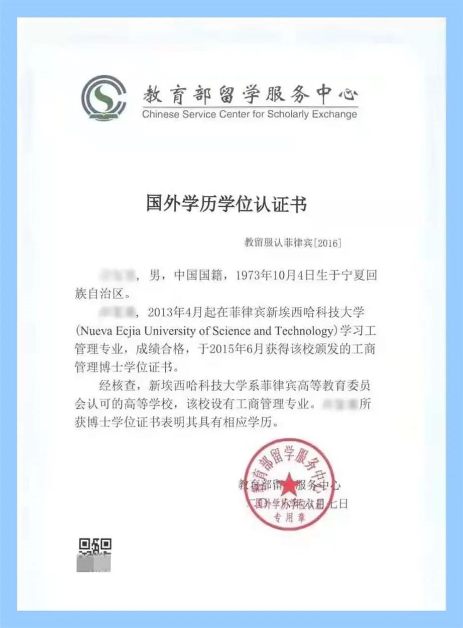 教育部留学服务中心对新埃西哈科技大学