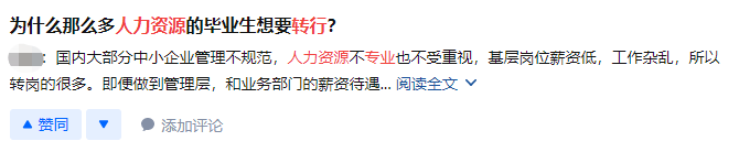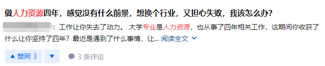 其中有刚从人力资源管理专业毕业的应届生,也有工作了好几年,资历较深的HR,每个问题下面都有不少回答,引发了很多HR的共鸣,他们都对未来感到迷茫,觉得自己在岗位上虚度光阴,现在所从事的工作并不能给自己带来能力上的提升。