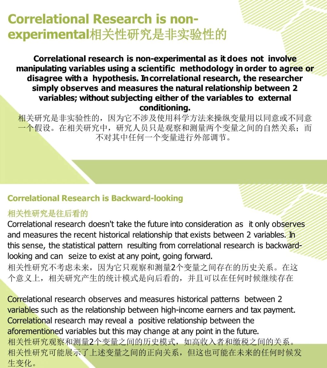 相关性研究不考虑未来,因为它只观察和测量2个变量之间存在的历史关系。在这个意义上,相关研究产生的统计模式是向后看的,并且可以在任何时候继续存在。