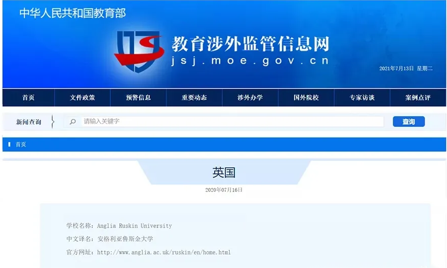 中国教育涉外监管信息网可查:http://jsj.moe.gov.cn/